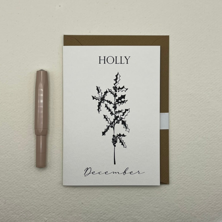 December birth flower card - Holly